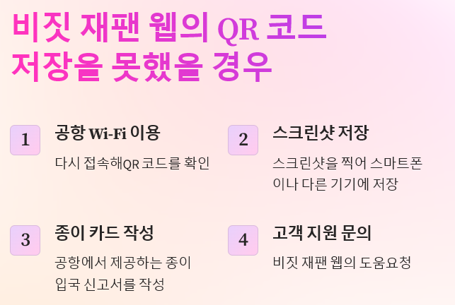 이러한 방법들을 통해 QR 코드 문제를 해결하고 원활한 입국 절차를 진행할 수 있습니다.