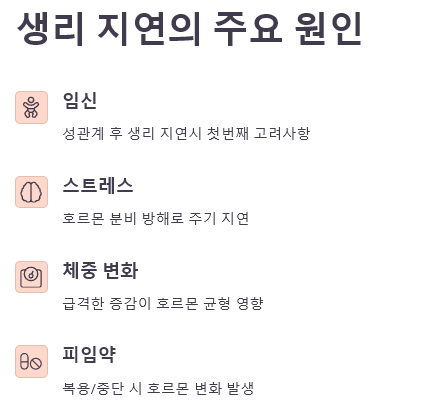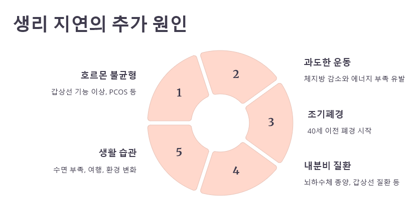 수면 부족, 여행, 환경 변화 등 생활 습관의 급격한 변화도 일시적으로 생리를 늦출 수 있습니다.