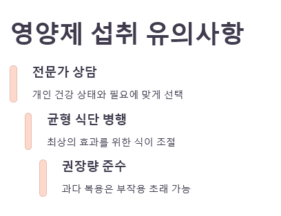 - 영양제는 개인의 건강 상태와 필요에 따라 선택해야 하며 전문가와 상담 후 복용하는 것이 좋습니다.