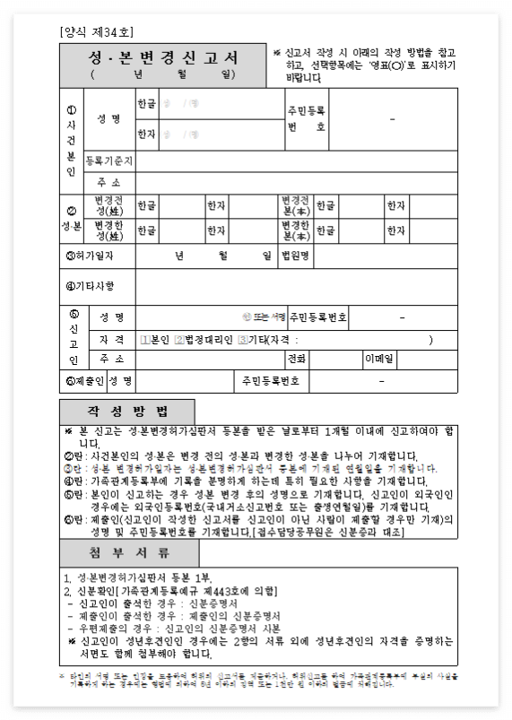 - 개인의 강한 의지: 성본변경에 대한 본인의 강한 의지 표현합니다.