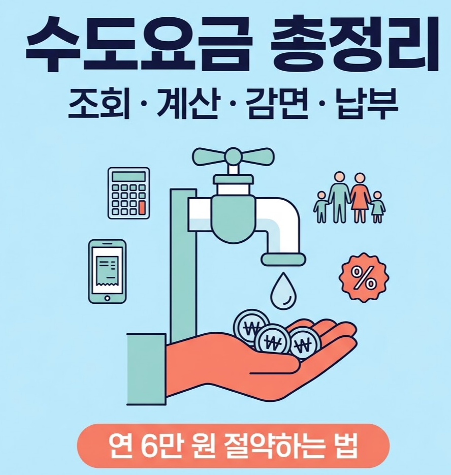 수도요금이 어떻게 계산되는지, 내가 감면 대상인지, 납부는 어떤 방법이 있는지 궁금하셨나요? 이 글 하나로 수도요금 조회부터 계산방법, 감면대상, 자동이체 신청, 다자녀 할인, 납부 방법, 이사정산, 명의변경까지 2026년 최신 기준으로 빠짐없이 정리합니다. 모든 혜택을 조합하면 연간 최대 약 6만 원 이상 절약할 수 있으니 끝까지 확인해 보시기 바랍니다.