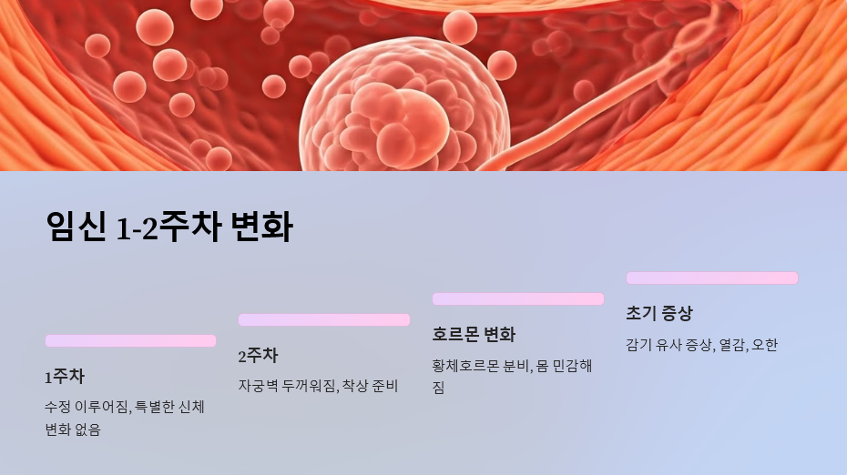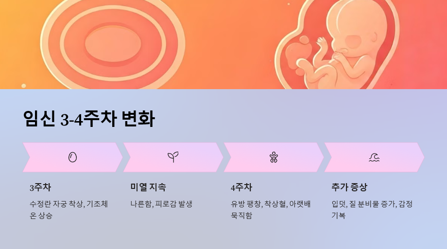 임신 1~4주차에는 산모의 몸에 다양한 변화가 나타나며, 이는 태아의 착상과 초기 발달에 따른 호르몬 변화와 관련이 있습니다. 다음은 주차별로 나타날 수 있는 주요 신체 변화를 정리한 내용입니다.