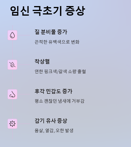 - 임신 초기 증상은 생리 전 증후군(PMS)과 비슷하여 혼동될 수 있으므로, 정확한 확인을 위해 임신 테스트기를 사용하거나 병원을 방문하는 것이 좋습니다.