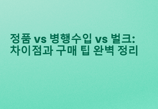 정품, 병행수입, 벌크 제품의 차이를 이해하는 것은 소비자에게 매우 중요합니다. 각 제품의 특성과 장단점을 비교하여 구매 결정을 내리는 데 도움이 됩니다.