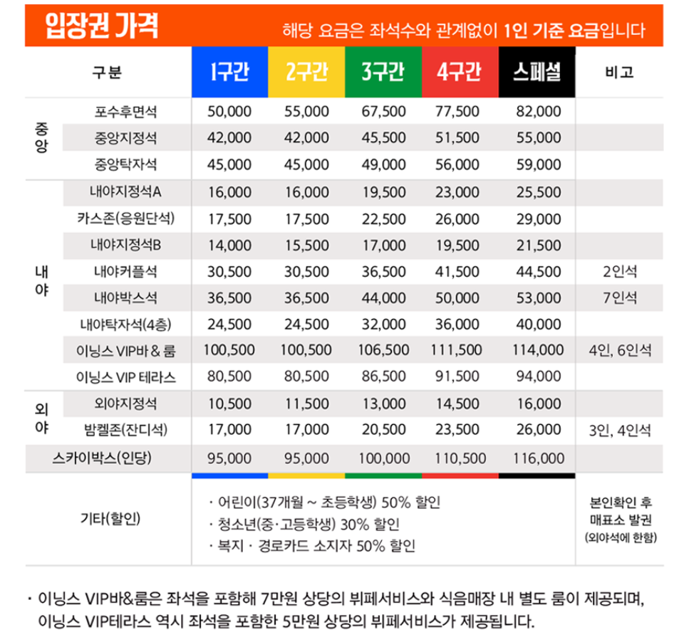 - 현장 구매: 경기 시작 약 2시간 전부터 매표소에서 가능.