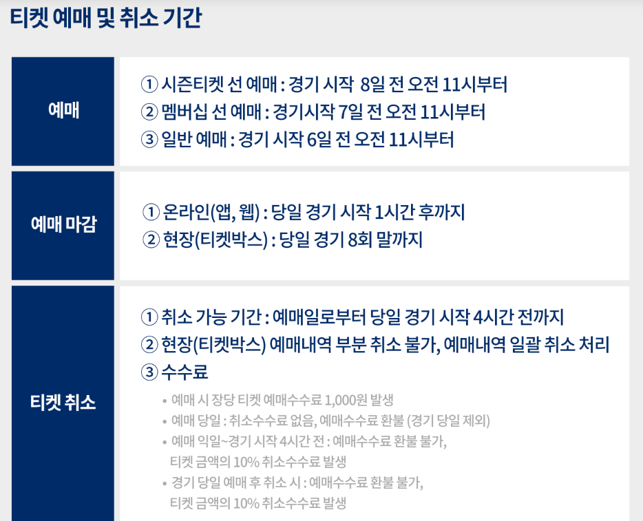 • 구매 좌석 동일하게 다음 시즌 우선 구매 가능.