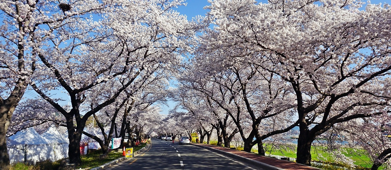 - 특징: 길게 이어진 벚꽃 터널은 드라이브, 자전거, 또는 도보로 이동하며 찍기에 좋습니다. 끝없이 이어지는 벚꽃 아치가 인상적입니다.