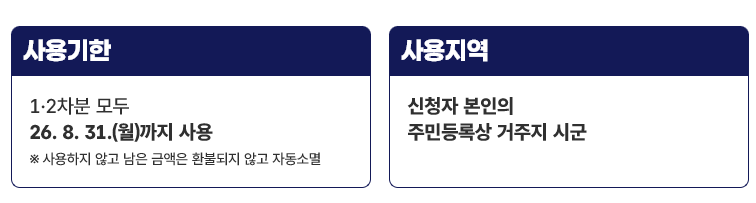 - 유효기간: 2026년 8월 31일(일)까지 (미사용 잔액은 국고 환수)